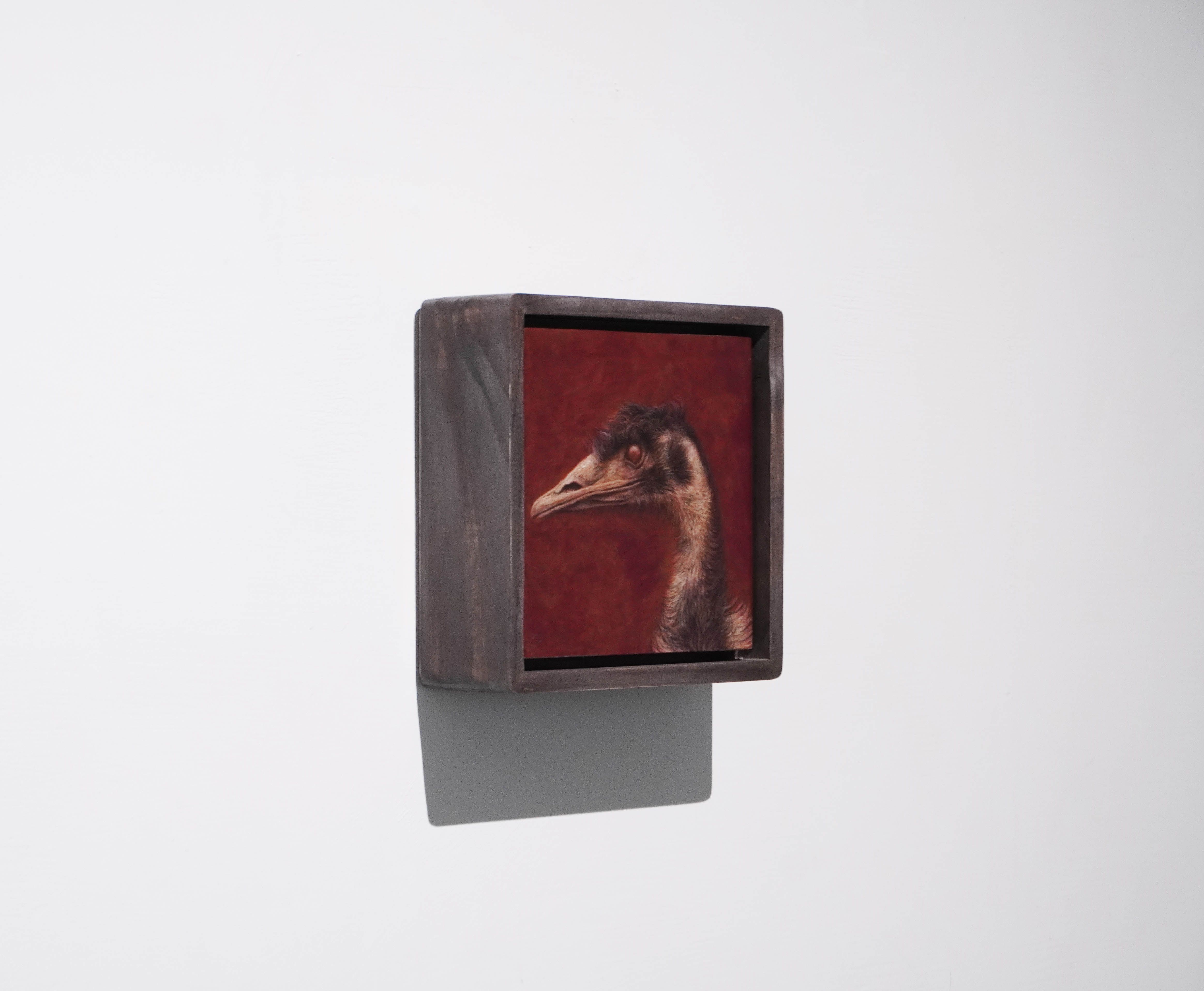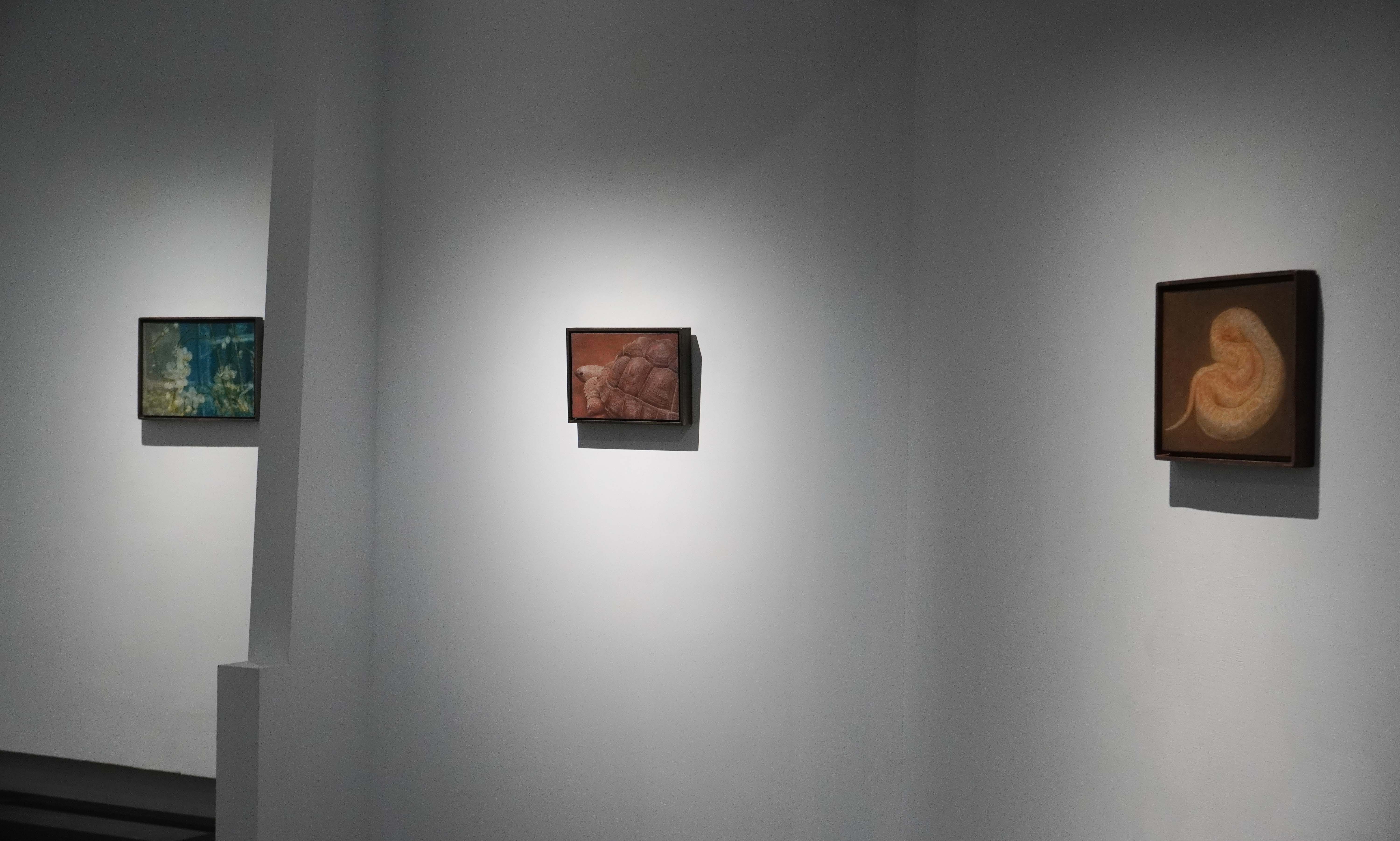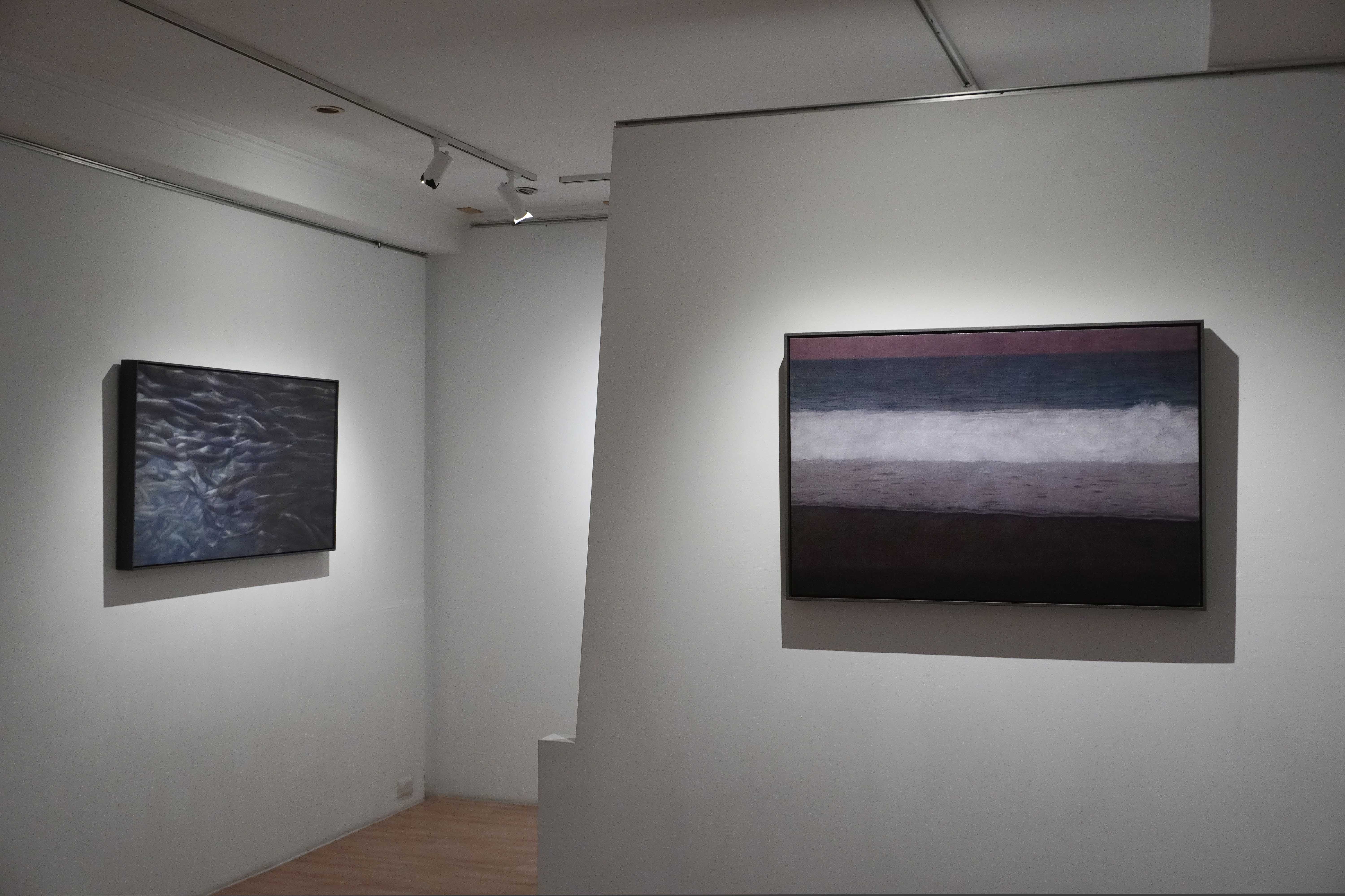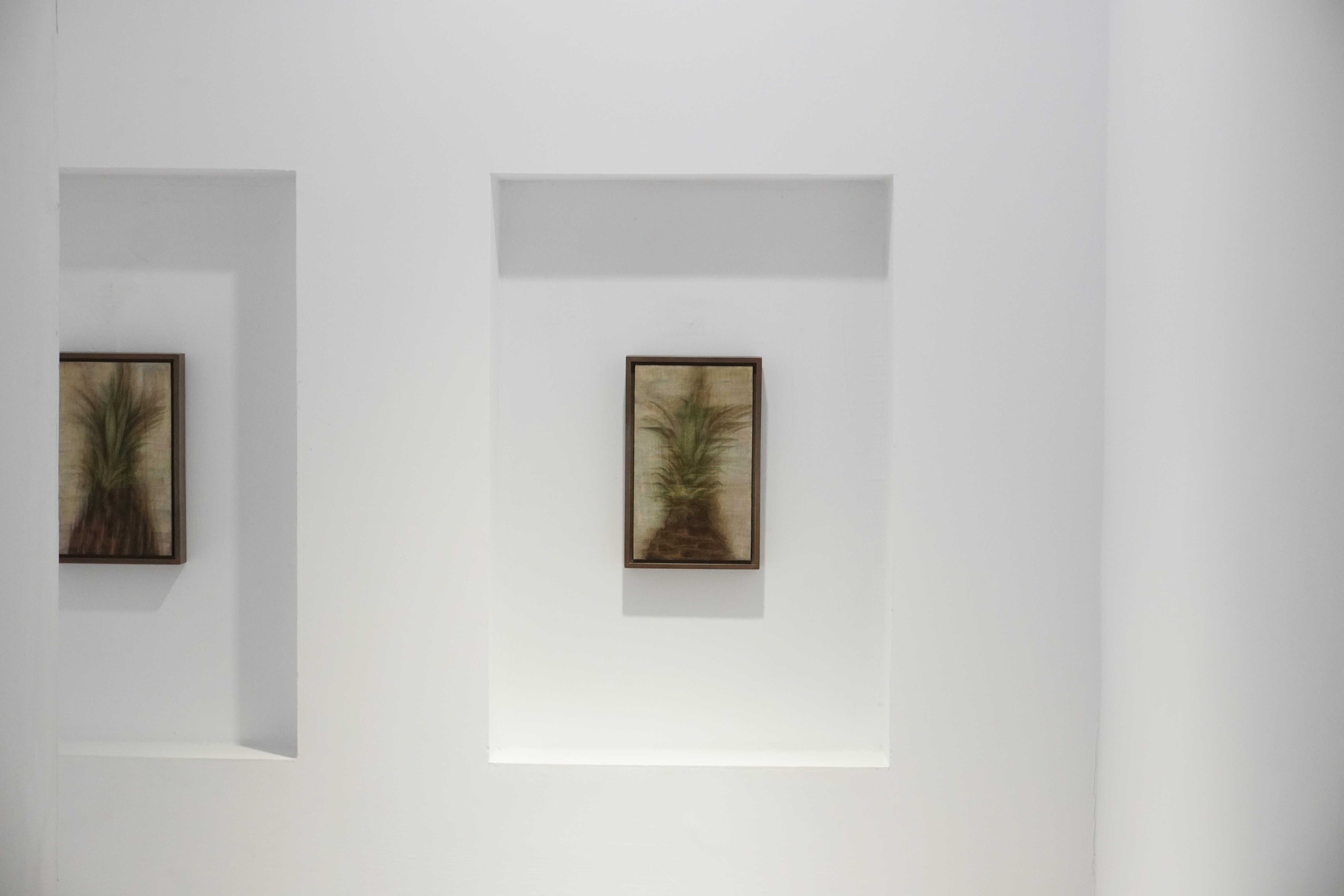 陳孟澤擅長運用蛋彩(Egg Tempera)與油彩(Oil Paint)的複合技法。在本次展出的作品中,觀者能見到油彩所提供的光澤感與厚度,以及蛋彩賦予畫面輕盈、柔潤的暈染特質。一油一水,一重一輕,結合不同的畫布底材,呈現豐富的表層肌理,也直接影響了光線在畫面的細微呈現。他的作品有著低彩度、幽微的光影處理,屏除喧嘩的視覺語彙,反而引領視線朝向陰暗處。迫使觀者放慢腳步,貼近畫面去感受其中明暗遞變。